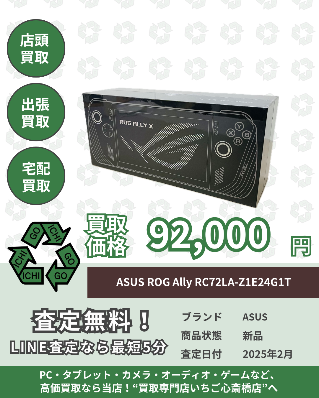 ASUS ROG Ally RC72LA-Z1E24G1T 買取させていただきました。