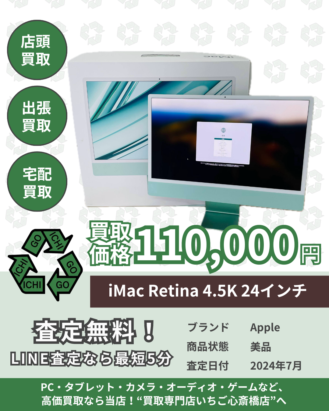 iMac Retina 4.5K 24インチ (Mid 2023) 買取させていただきました。