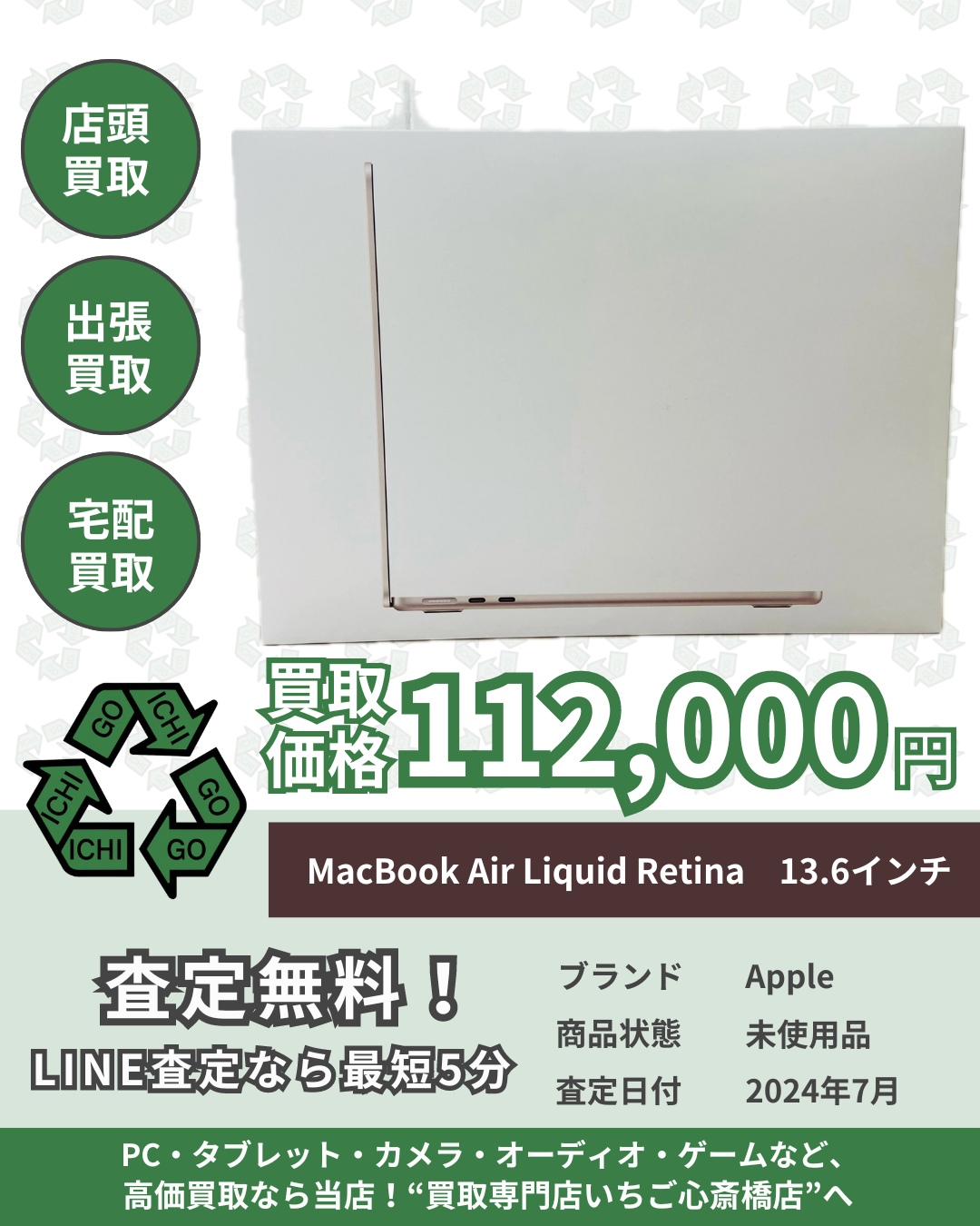 MacBook Air Liquid Retinaディスプレイ 13.6インチ 買取させていただきました。