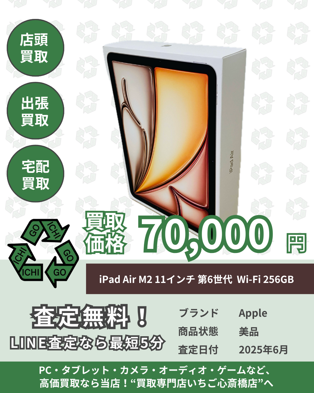 iPad Air M2 11インチ 第6世代 Wi-Fi  256GB  MUWJ3J/A 買取させていただきました!