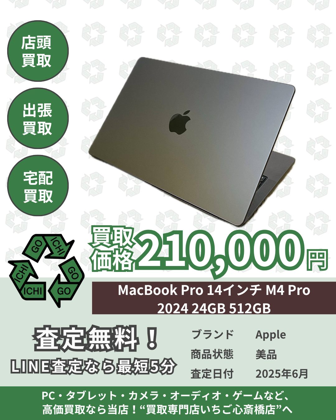 MacBook Pro 14インチ M4 Pro 2024 24GB 512GB 買取させていただきました!