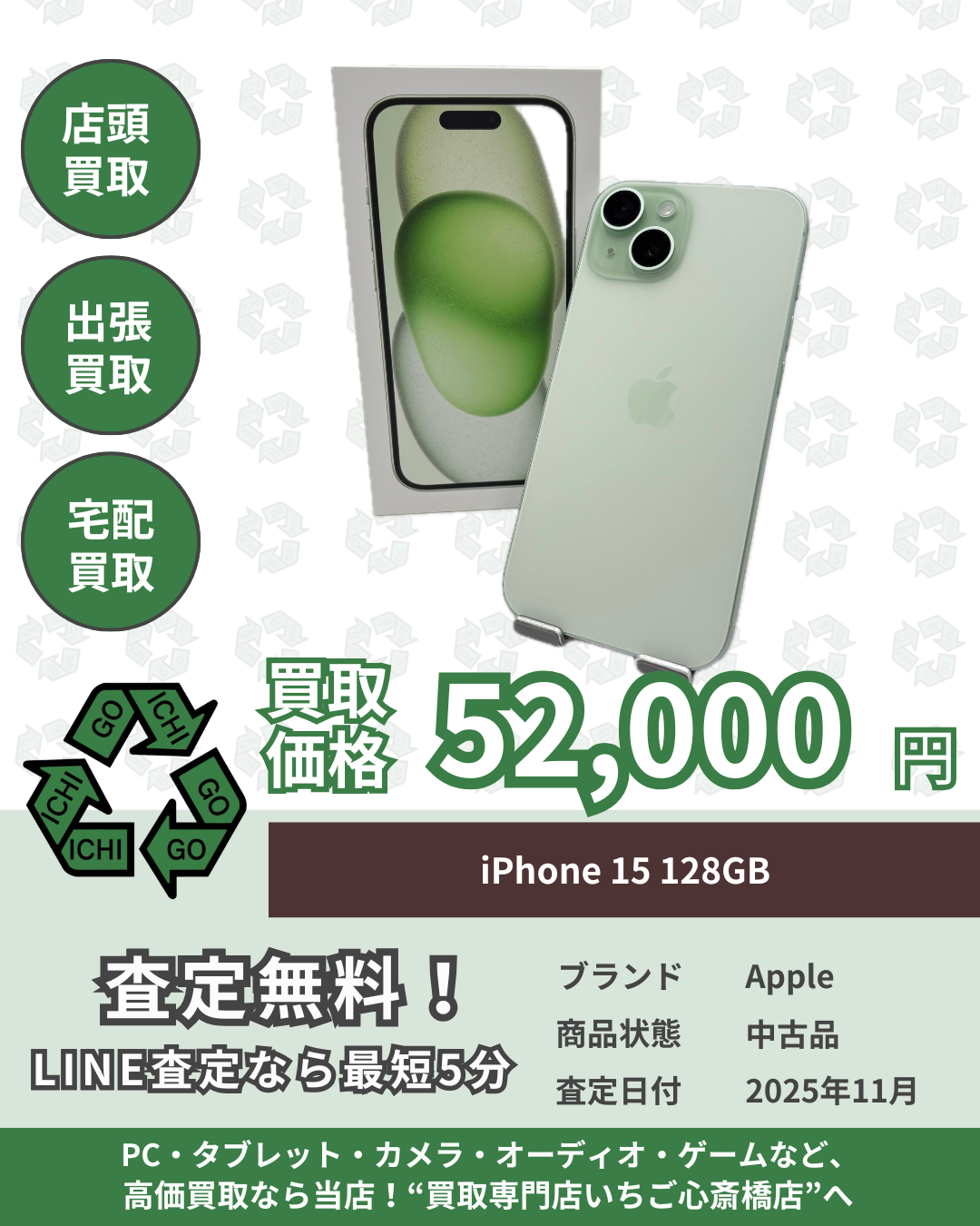 iPhone 15 128GB 買取させていただきました!